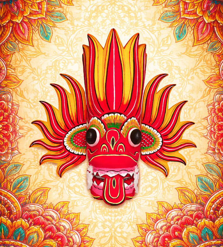 This particular mask is also used in various festivals and cultural dances. The masks are made of kaduru wood while the paint is acrylic.